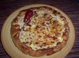 Ingredienti Ingredienti per 6 persone: – 500 g di farina – una bustina di lievito per torte salate – 150 g di caciotta toscana – 2 uova -100 g di pancetta a