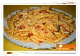 Ingredienti Per 4 persone: – 5 peperoni rossi – 2 spicchi di aglio – 50 ml di olio extravergine d’oliva – 300 gr di fusilli freschi di semola –