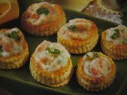 I vol-au-vent sono piccoli canestrini formati da e dischetti di pasta sfoglia sovrapposti, aperti in alto e vuoti all’interno, che si possono riempire sia con