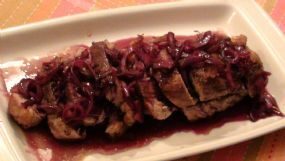 Ingredienti un filetto di maiale 2 scalogni 350 ml di vino rosso sale pepe un ciucchiaino di amido di mais acqua qb olio Preparazione Saliamo e pepeiamo bene il filetto. In una teg
