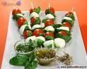 Ingredienti Per 5 spiedini: 15 mozzarelline ciliegia 15 pomodorini 15 foglioline di basilico olio extravergine d’oliva e sale Difficoltà: facile. Preparazione: 10 minu