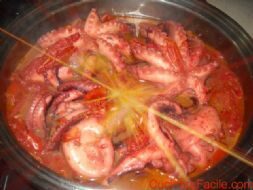 Ingredienti – 4 polpi veraci freschissimi – 2 spicchi d’aglio – un bicchiere di olio extravergine d’oliva – un peperoncino piccante – mezz