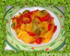 Ingredienti – un peperone rosso – un peperone giallo – un peperone verde – 8 cucchiai di olio extravergine d’oliva – 2 spicchi d’aglio