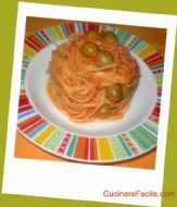 Ingredienti Una cipolla 2 scatolette di tonno sott’olio da gr 160 un cucchiaino di peperoncino in polvere 50 ml di vino bianco amabile 300 ml di passata di pomodoro un pugno