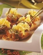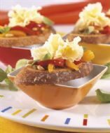 Crostini ai peperoni pasta di olive,pinoli e tête de moine