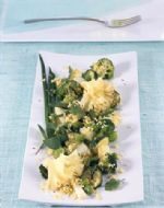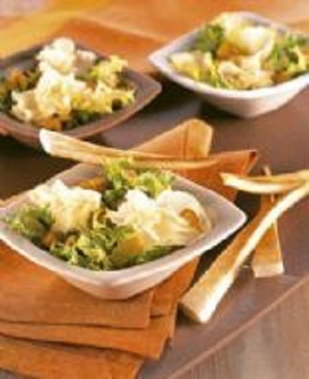 Insalatina alle mandorle con pollo al curry e tête de moine