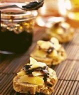 Ingredienti Questa è la ricetta per preparare le Tartine allo Sbrinz con Pancetta, Pesche e salsa di Fichi Ingredienti (per 4 persone):12 crackers tondi o biscotti salati;30