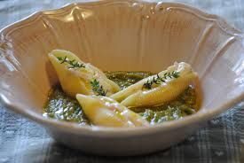 Ingredienti Ingredienti: (dose per 4 persone) pasta a chiocciole (o ruote) g 320, un peperone rosso, un peperone giallo, basilico, maggiorana, aglio, olio extravergine d’oliv