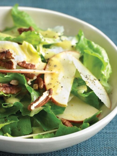 Ingredienti Dosi per 4 persone: 250 g di garganelli all’uovo, 1 piccolo cespo di scarola, una mela verde, 80 g di prosciutto cotto affumicato in una sola fetta, 200 g di fagi