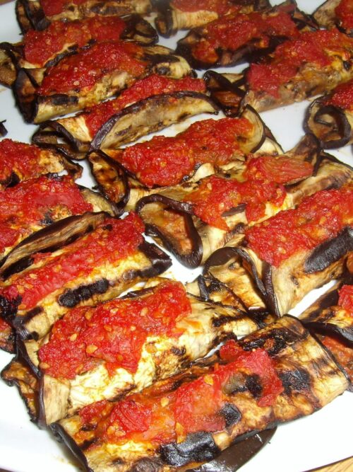 Ingredienti Ingredienti per 4 persone: -500 g di melanzane -400 g di pomodori -200 g di mozzarella -1 spicchio di aglio -1 rametto di menta -aceto bianco -olio extravergine d&rsquo