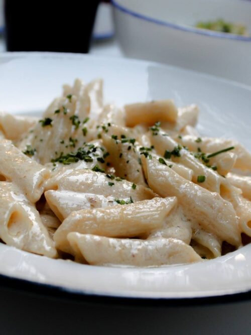 Ingredienti Dosi per 4 persone: 320 g di penne formato grande, 300 g di gamberi, 250 g di yogurt magro, cannella in polvere, zenzero in polvere, noce moscata, erba cipollina, olio,