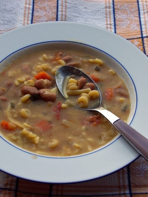 Ingredienti Dosi per 4 persone: 200 g di orzo perlato, 200 g di maiale affumicato, 100 g di speck tagliato spesso, 1 cipolla, 1 carota, 1 gambo di sedano, 1 porro, 1 patata, 2 rame