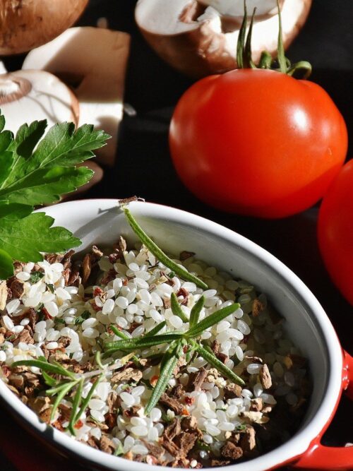 Ingredienti Dosi per 4: 300 g di riso parboiled, 300 g di code di gambero, 1 cetriolo, 2 pomodori ramati sodi e maturi, 2 cucchiai di pesto, basilico fresco, 2 cucchiai d’oli