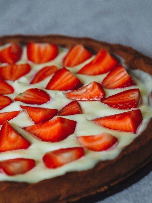 Ingredienti 350 gr di pasta frolla già pronta 500 gr di fragole mature 300 ml di panna da montare 1 cucchiaio di Maraschino 1 cucchiaio di zucchero a velo Preparazione La fe