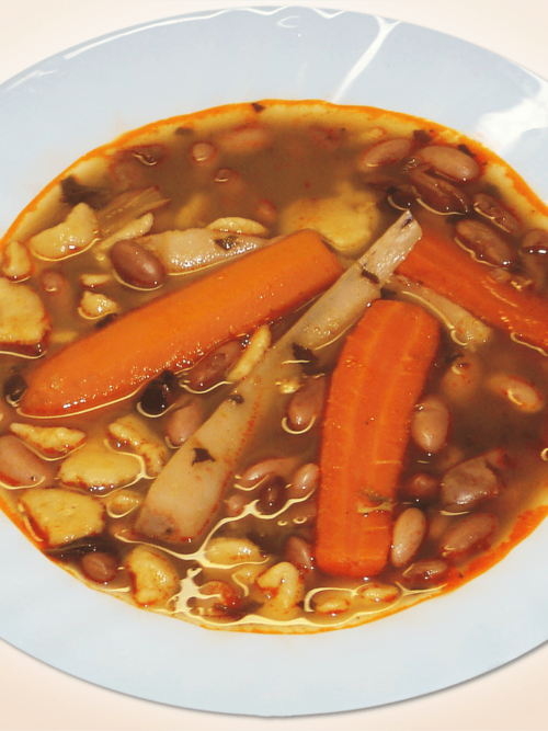 Ingredienti Dosi per 4: fagioli con l’occhio secchi 100 g, ceci secchi 100 g, lenticchie 100 g, azuki verdi (semi di soia) 50 g, piselli secchi 50 g, lardo 50 g, uno spicchio