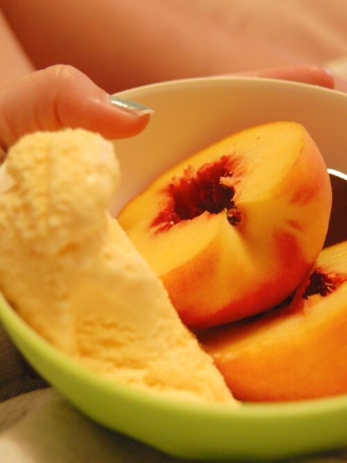 Pesche con gelato aromatico