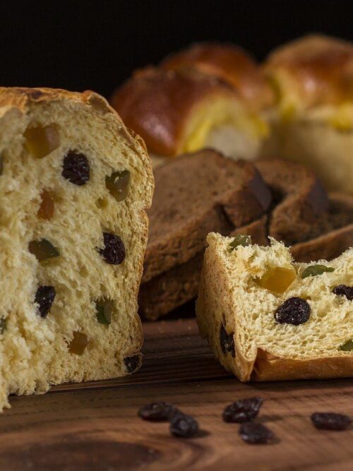 Per 8 persone: 800 gr di farina 300 gr di zucchero 350 gr di burro 350 ml di latte 1 cubetto di lievito 1 pizzico di sale 3 uova 600 gr di uva passa Buccia grattugiata di 2 limoni