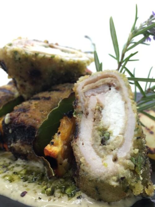 Involtini di maiale con pistacchio, melanzane e ricotta