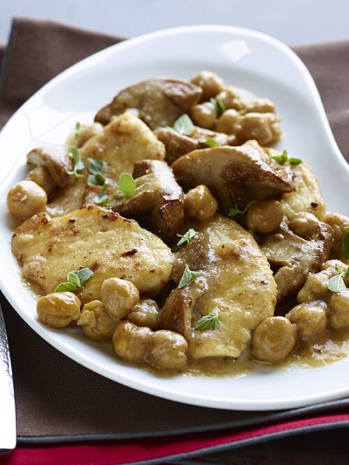 Le scaloppine di pollo con ceci e porcini portano in tavola un secondo piatto delicato e completo adatto proprio a tutti. Il secondo a base di carne è una rivisitazione dell